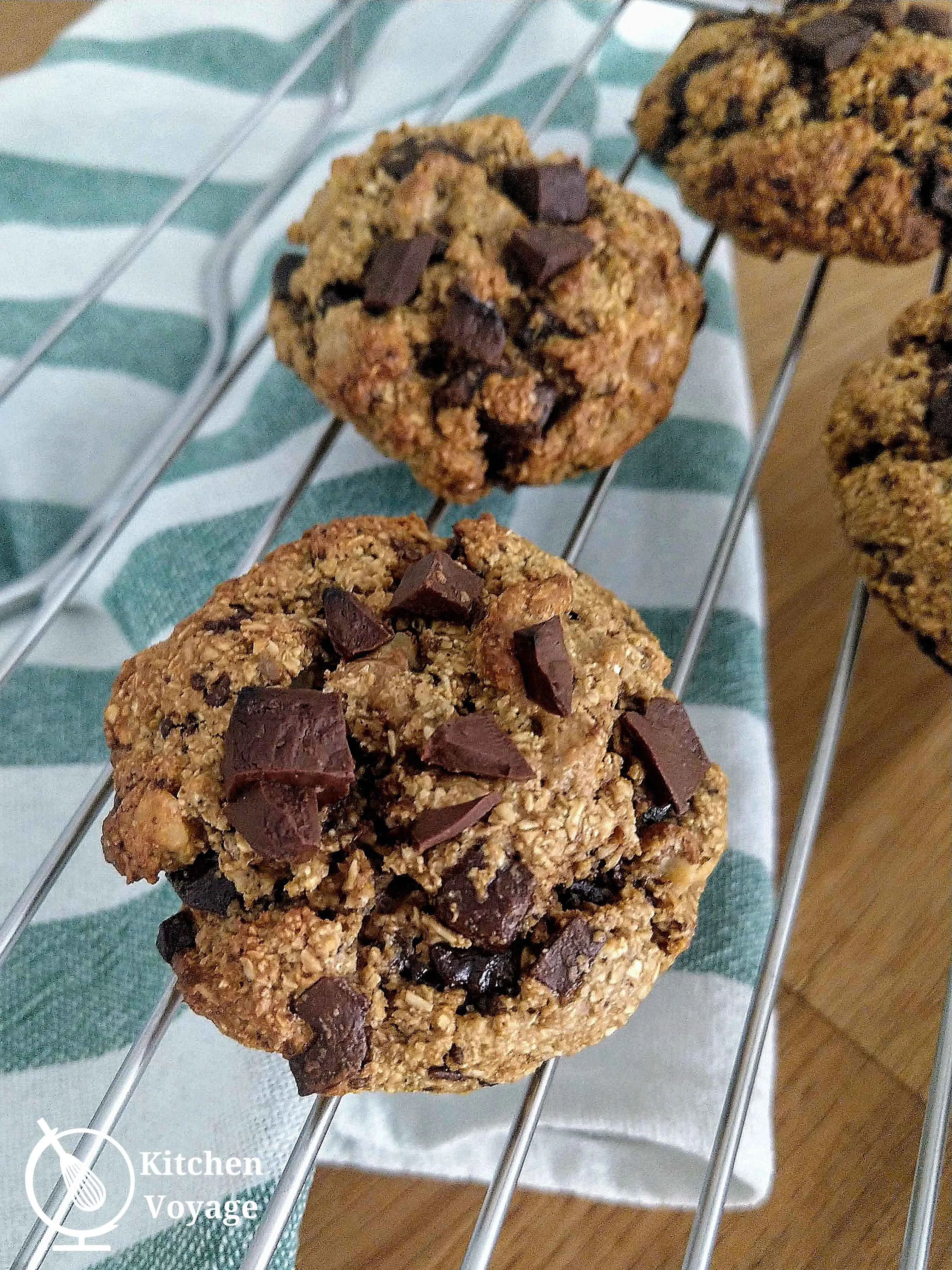 I find that this recipe is a healthier alternative to the store-bought chocolate chip cookie options available. I am using wholegrain oats as well as there is no butter, oil or eggs in this recipe.