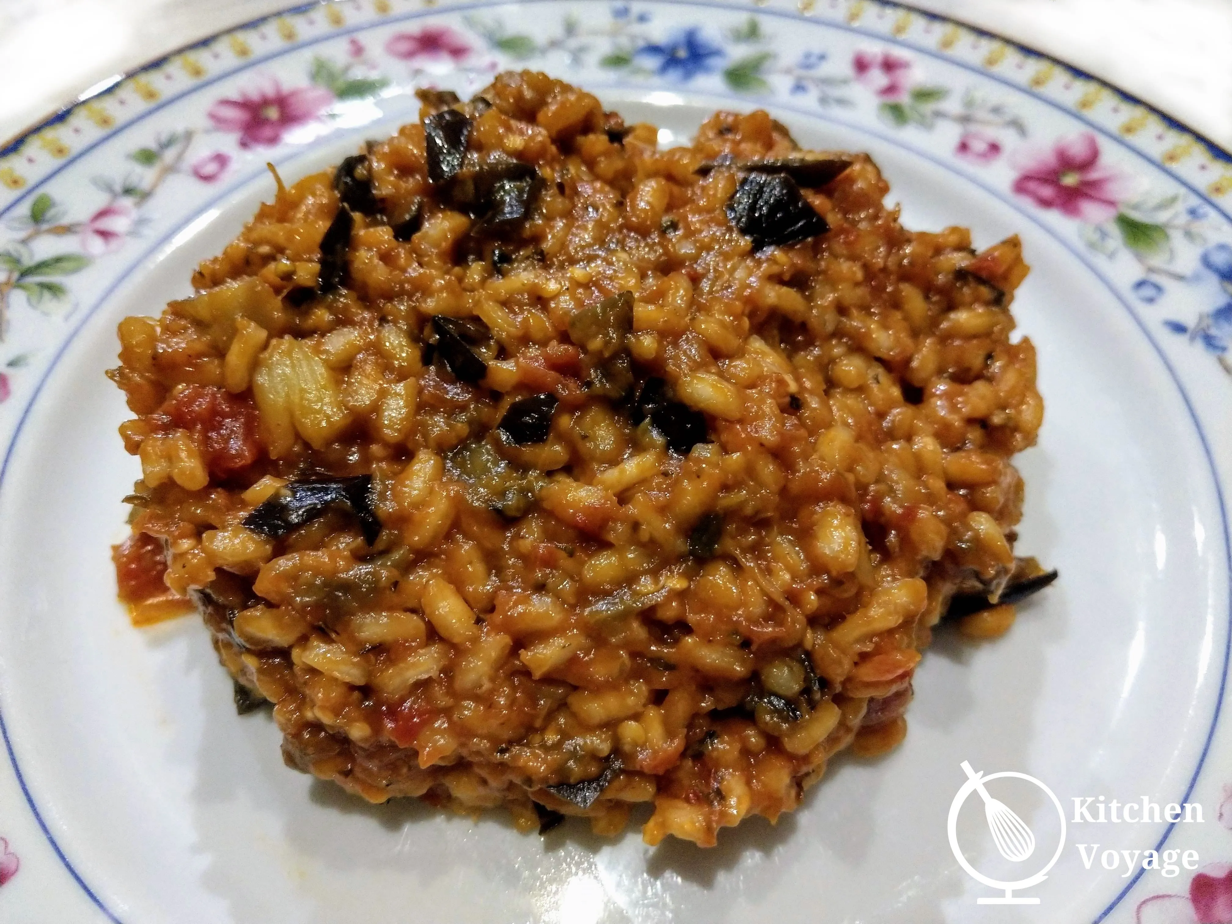 Aubergine is already more available in the markets by now and tomatoes will also start getting more taste with the change of season. I wanted to combine these vegetables with one of our favourite dishes… Risotto! :D